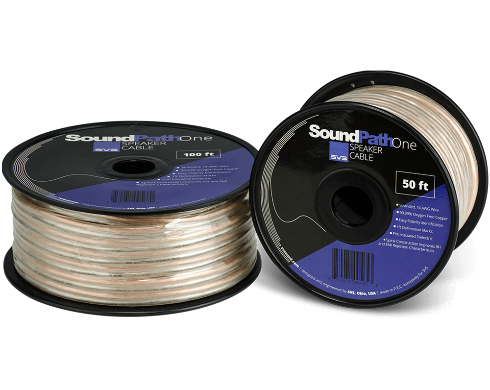 SVS SoundPath One Speaker Cables are a smarter alternative to cheap bulk speaker wire and cable. The premium 14-gauge cables come in 50 or 100 foot spools and features electromagnetic shielding for noise isolation and premium build quality that outclasses anything anywhere near their price range.